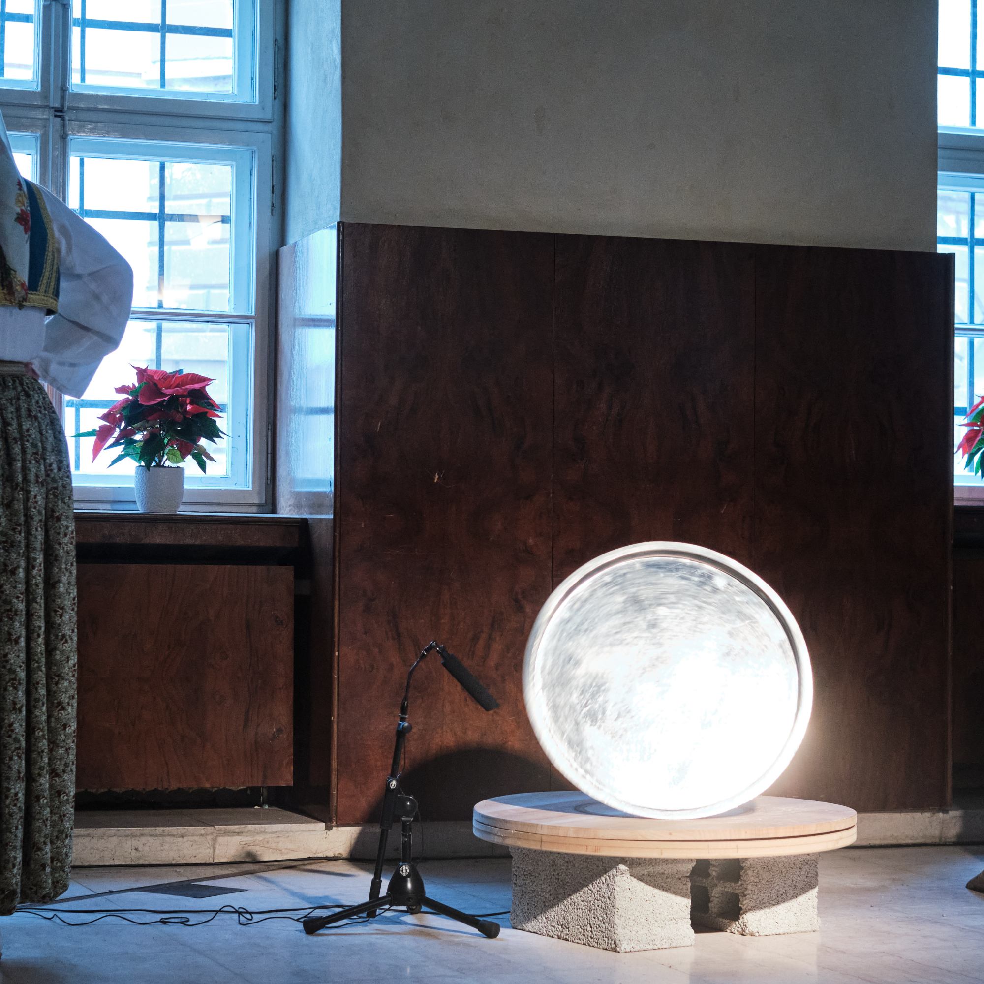 Exoneration of tradition is a hybrid performative project by multimedia artist Lala Raščić. The performance is based in the artist’s research of tepsijanje, a mainly female traditional custom – a heritage facing oblivion – and places it in a contemporary context. Through a feminist prism, the artist explores new possibilities of using the tepsija / pan as an idiophonic instrument liberated from the context of instrumentalized tradition and folklorized representation.