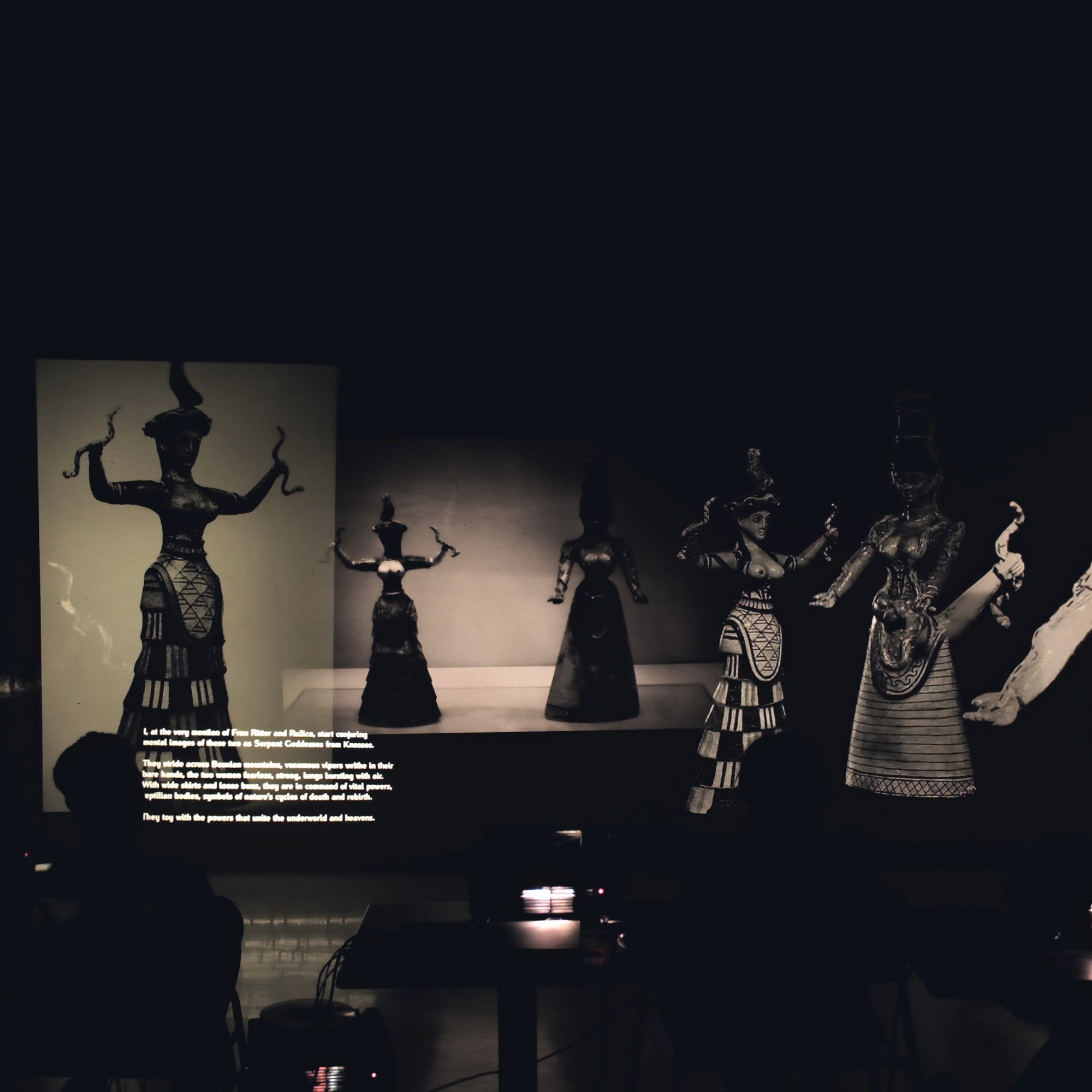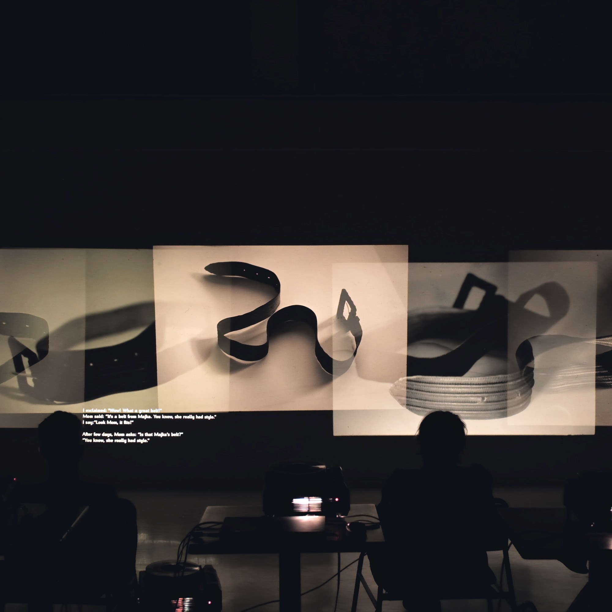 The essay, narrated by the artist, is accompanied by a collaged display of images reproduced via 5 synchronized dia-slide projectors. Digital open-source images collected across the internet and photographic material shot on site underwent a media transmutation, from digital to analog. The artist used black and white dia-slide stock to transport images from screen to the physical medium of film and experimented with photo-chemical processes to achieve effects of tinting, solarization and granulation. This nod to media history goes back to Aby Warburg who delivered his seminal lecture Serpent Ritual in 1923 to the accompaniment of a carefully crafted sequence of dia-slide projections.