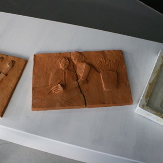 As in my other works, I assume the stage casting myself as a number of characters in a live audio-drama performance developed with the Mostar band Vuneny. The project consists of a number of elements including two videos, drawings, terracotta reliefs, an artist book containing the script of the audio drama and a live performance. Each of these elements is thread that feeds into one narrative.