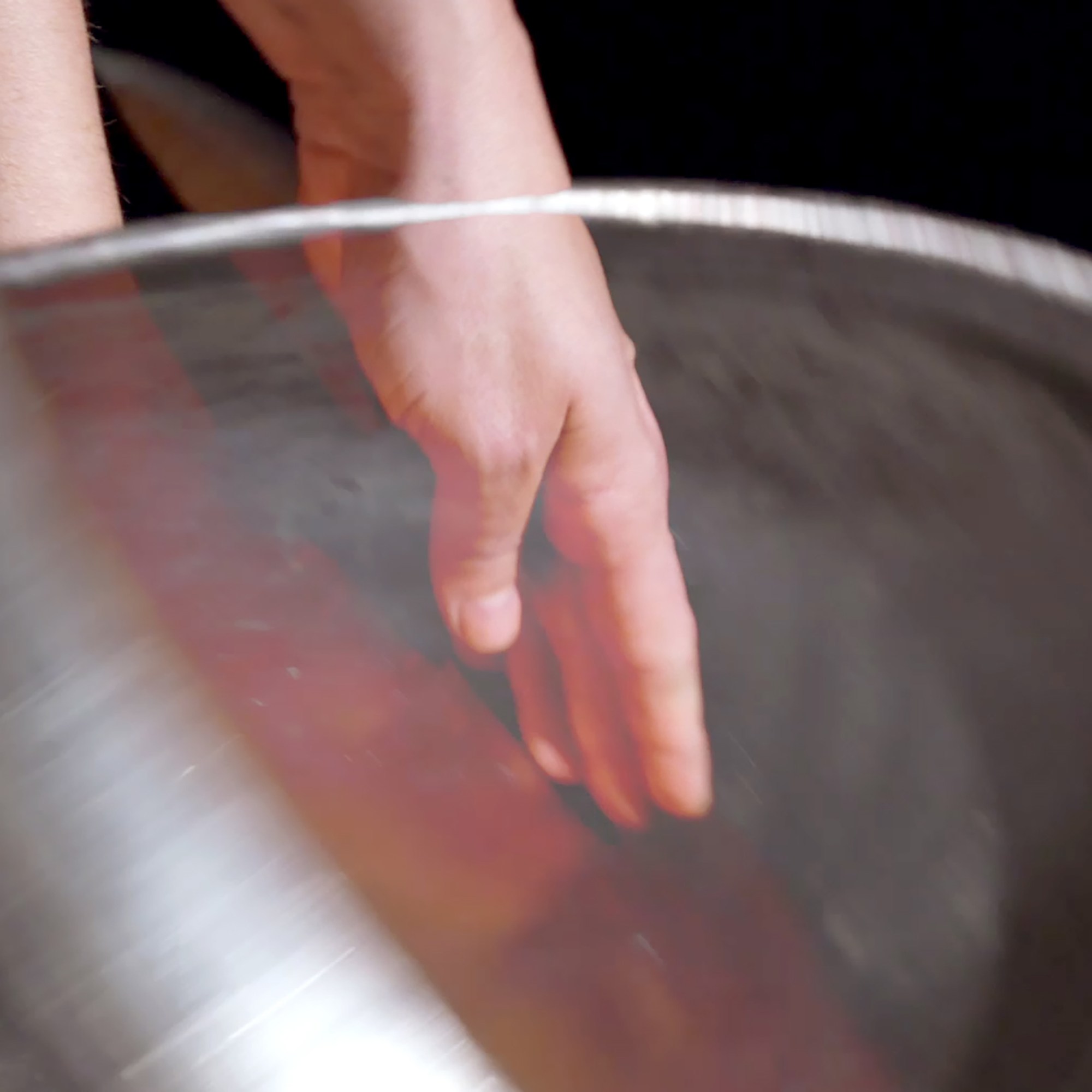 Raščić interprets the practice of tepsijanje as an authentic expression of suppressed feminine subjectivity and a proto-feminist gesture. Through her continuous artistic research, which she dubs Exoneration of Tradition, Raščić studies traditional forms and critically examines the ideas of folklore and folklorization as a means of repatriarchalization and neo-traditionalization of society, and reflects on the evolution of traditional forms, freeing them from the normative cultural context. While tepsijanje persists to this day due to its visual appeal in folk choreographies and its simplicity of performance, the artist focuses on the acoustic specificities of this practice, as well as on the conclusions, previous research, and field work of various ethnomusicologists and folklorists. She adopts and experiences her own practice of tepsijanje through collaboration with Azra Pondro, a storyteller, tepsija-player, and a počimalja, the chorister – the one who starts the song and whose voice presides over the sonic landscape of this project.