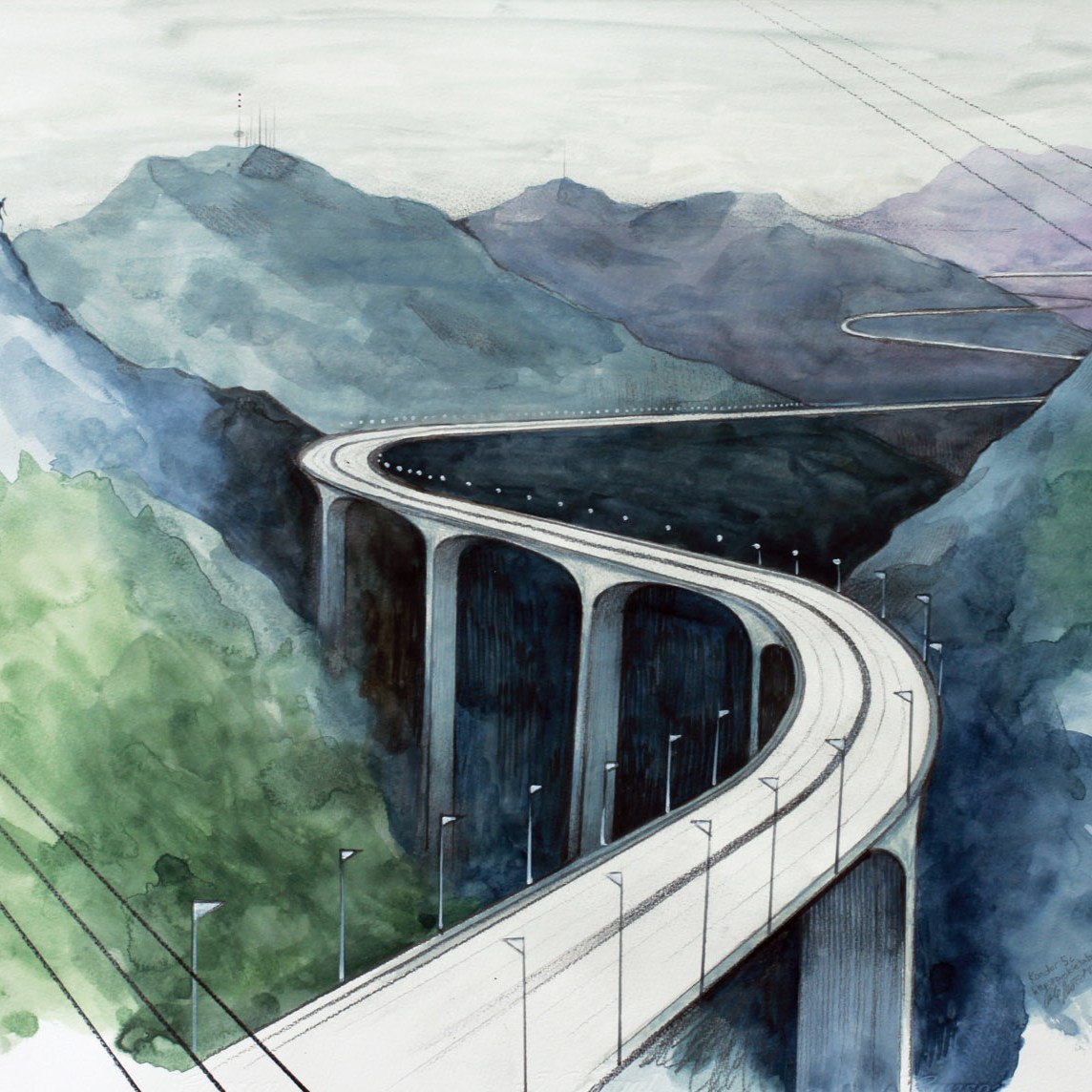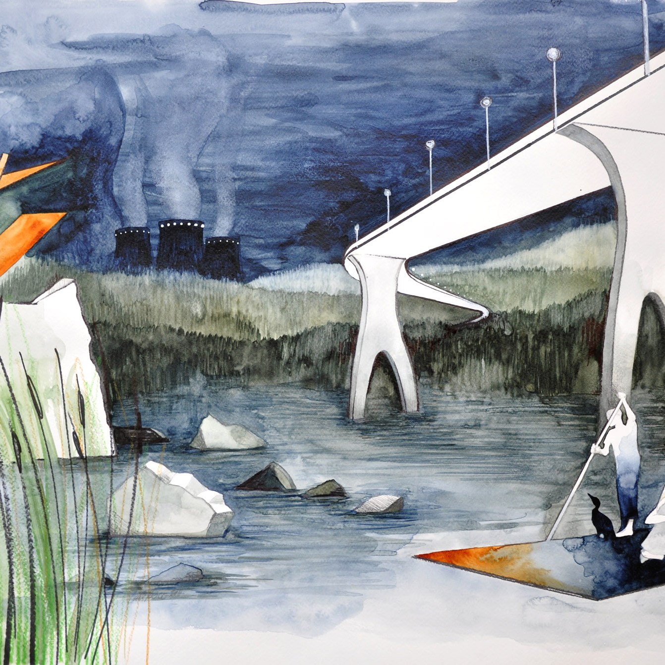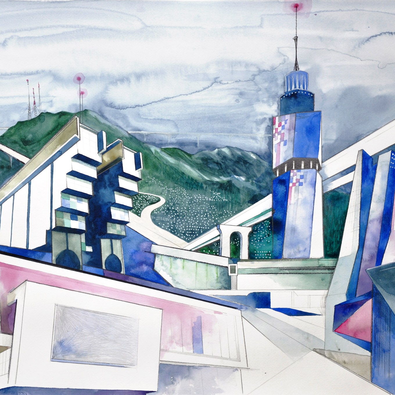 watercolor, pencil, marker on paper